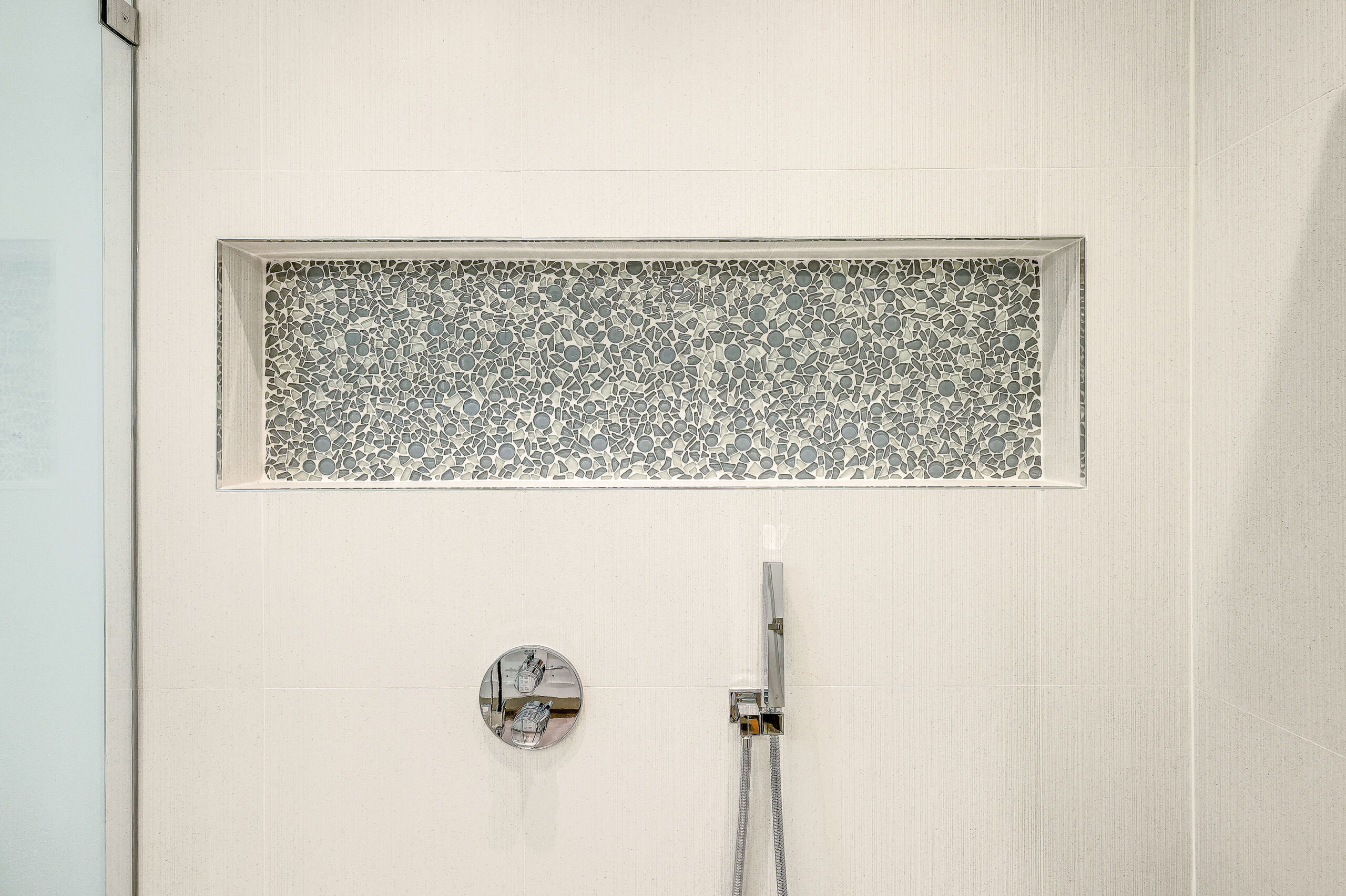 - Walk-in showers with frameless glass